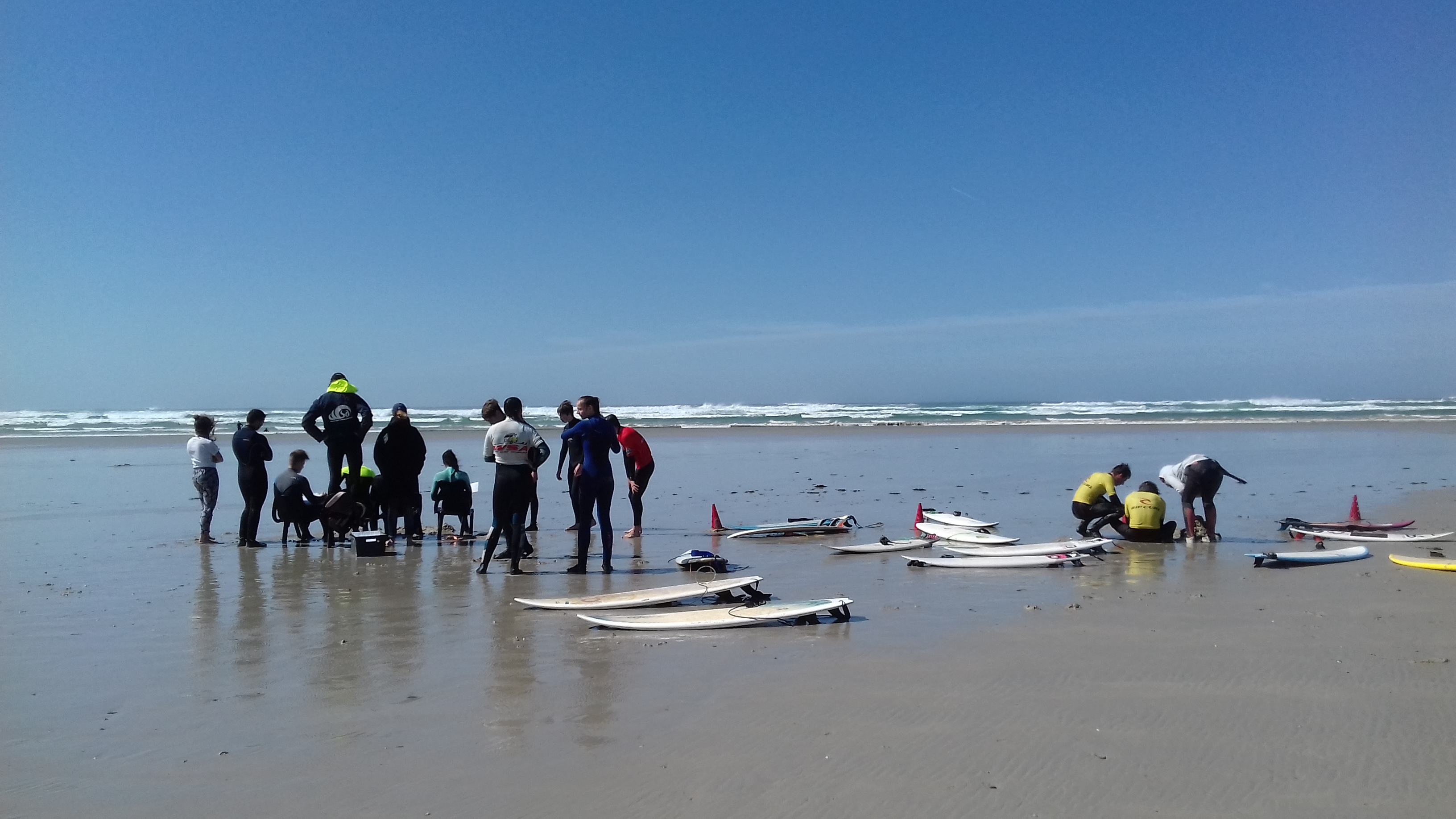 Le jury est en place mais doit se replacer en fonction de la marée,parfois avec un peu de retard, quitte à se retrouver les pieds dans l’eau ! (Pouldreuzic)
